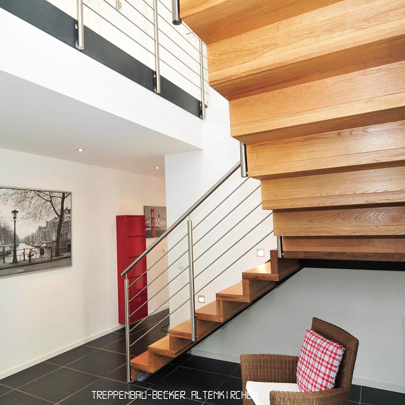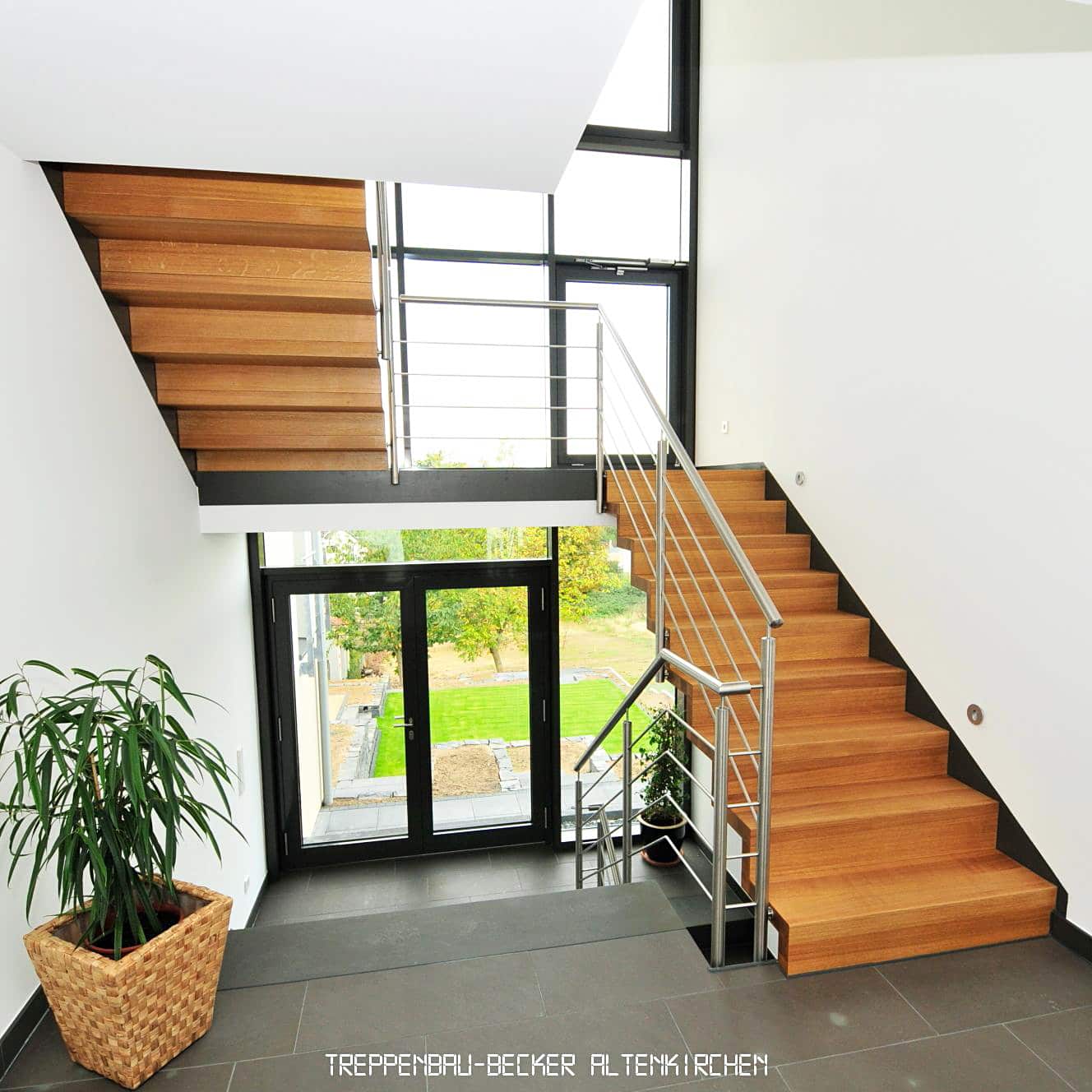 Eine Treppe ohne Setzstufen hingegen kann sehr viel leichter wirken.