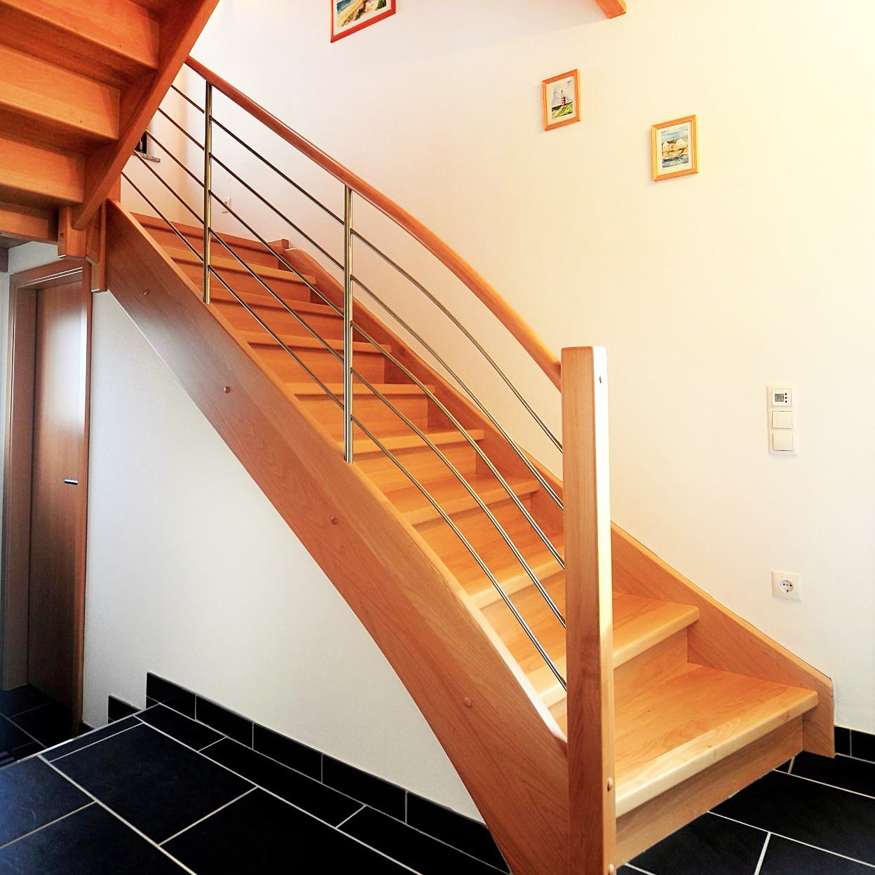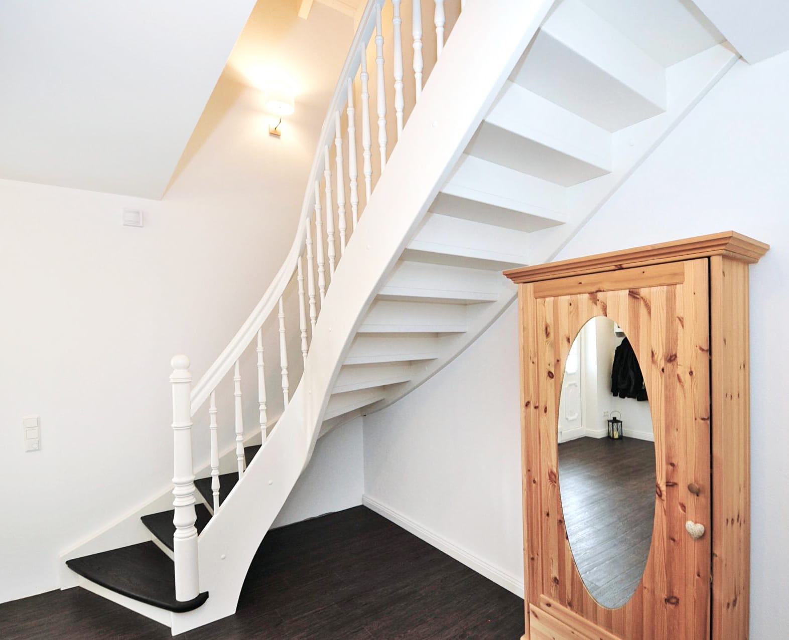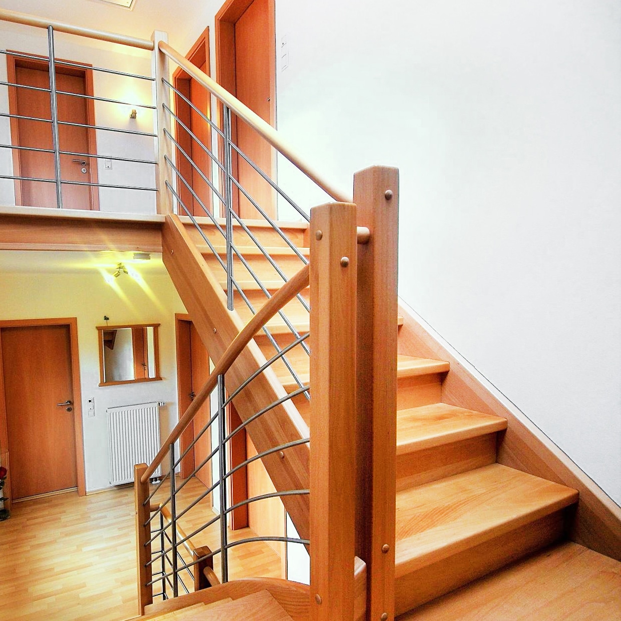 Eine geschlossene Massivholztreppe bietet nicht nur Sicherheit und Komfort, sondern auch die Möglichkeit, den Raum unter der Treppe sinnvoll zu nutzen – etwa als Stauraum oder Einbauschrank.