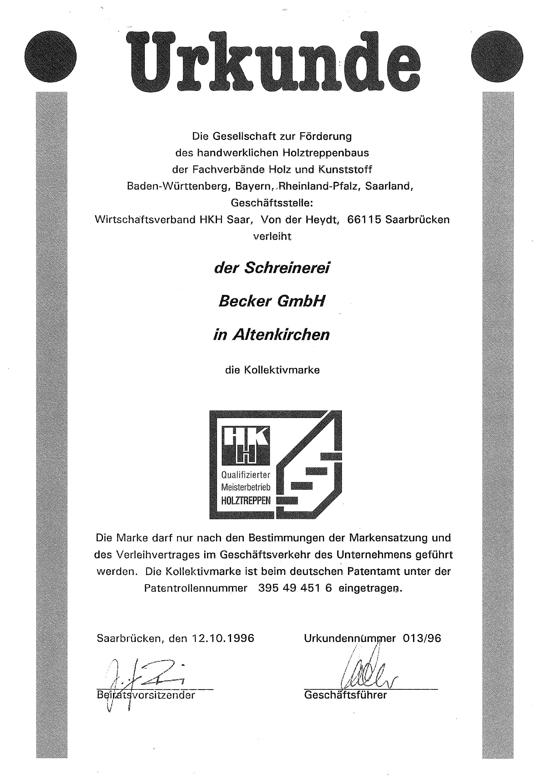 Als Fachbetrieb für Treppenbau legen wir Wert auf Sicherheit und Nachhaltigkeit. Um unseren Kunden Qualität bieten zu können, haben wir unsere Prozesse, Materialien und Arbeitsweisen durch anerkannte Zertifizierungsstellen prüfen und bestätigen lassen.